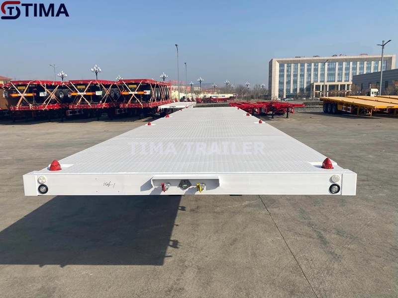 1. Longueur : La longueur d'une remorque porte-conteneurs à 3 essieux peut varier en fonction de la taille du conteneur qu'elle est conçue pour transporter. La plupart des remorques mesurent environ 40 à 45 pieds de long.