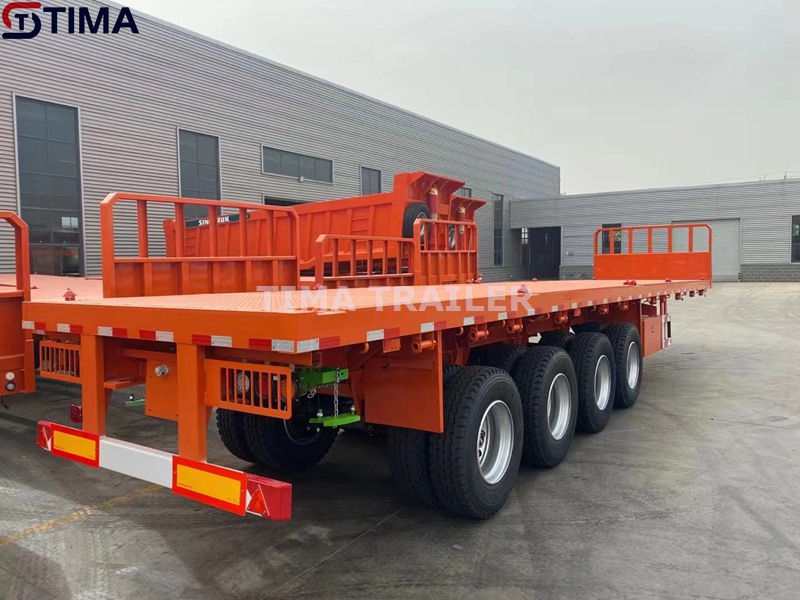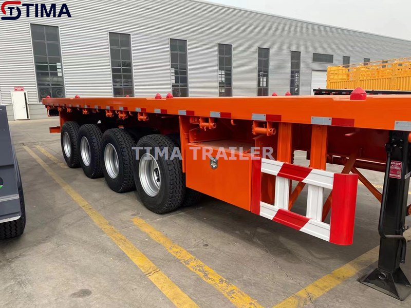 4 La remorque à plateau porte-conteneurs à essieux est similaire à bien des égards à une remorque porte-conteneurs à 3 essieux, mais possède un essieu supplémentaire pour une capacité et une stabilité accrues. Voici quelques caractéristiques clés de la remorque à plateau porte-conteneurs à 4 essieux.
