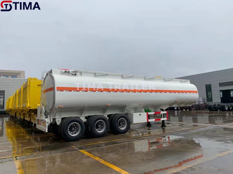 Le matériau de la remorque de réservoir de carburant à 3 essieux de 42 000 litres est doté de caractéristiques de sécurité telles que des vannes d'arrêt d'urgence, une protection contre les débordements et des câbles de mise à la terre pour éviter l'électricité statique. Les remorques-citernes à carburant sont généralement tirées par un camion semi-remorque et nécessitent des permis et des licences spéciaux pour le transport.