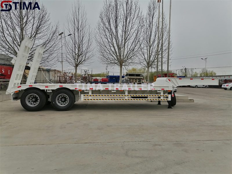 Conception spéciale de remorque surbaissée à 2 essieux de 40 tonnes pour le transport de petites machines à paver et répondre à la demande de poids de transport routier local. Très flexible en fonctionnement et facile à entretenir, très populaire en Tanzanie, en Zambie et en Papouasie-Nouvelle-Guinée, etc. Peut également ajouter 4 verrous de conteneur pour transporter le conteneur de 20 pieds.