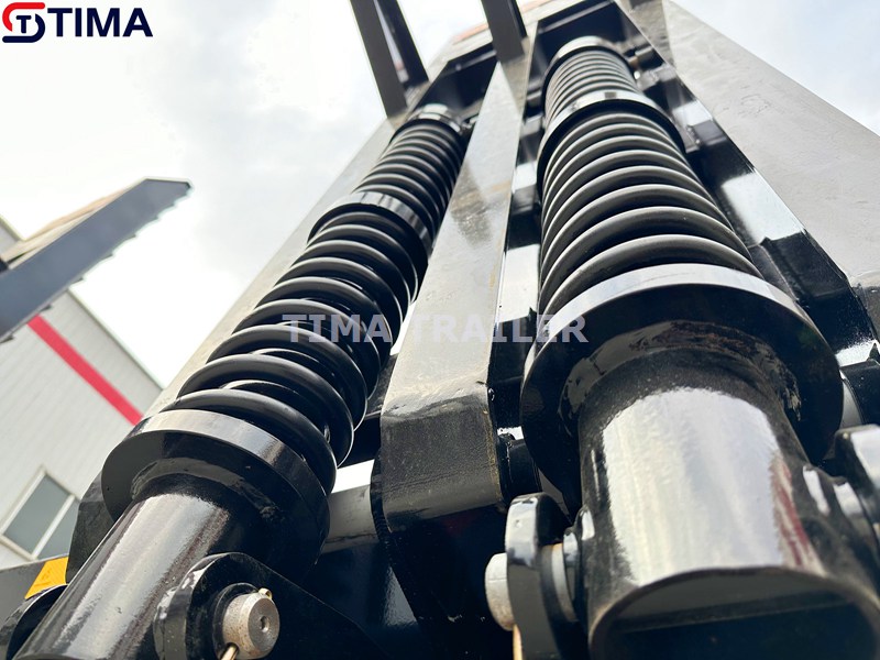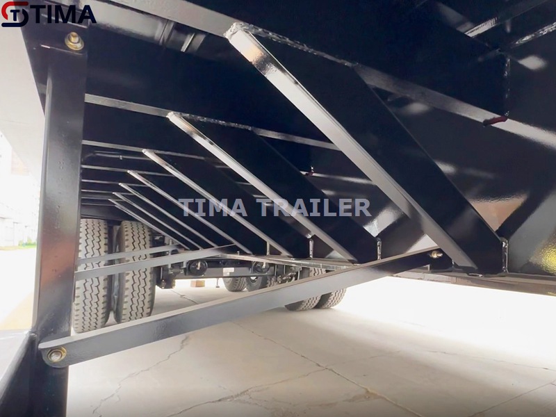 La suspension de remorque à pont bas de 80 tonnes est de type américain. Il comporte une configuration de ressort à lames avec des égaliseurs et des amortisseurs. Ce type de suspension est connu pour sa durabilité et sa fiabilité, et il convient aux applications lourdes telles que le transport de charges de 80 tonnes. Il existe également une suspension de modèle de type allemand en option.